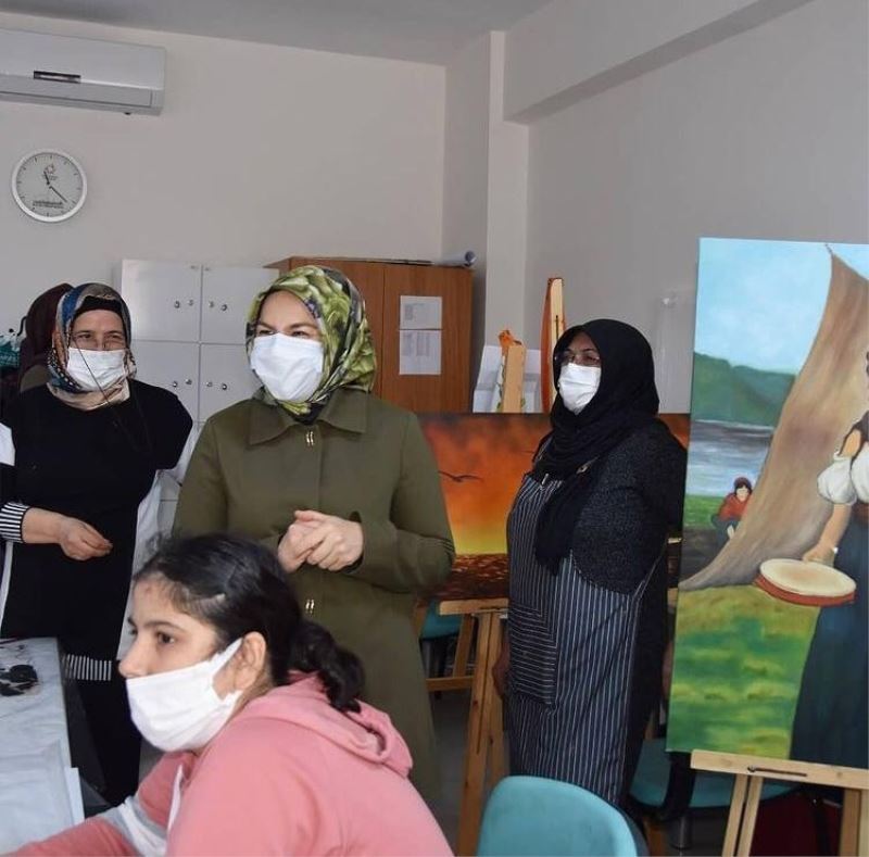 Kadınların talepleri doğrultusunda açılan ve profesyonel eğitimciler tarafından verilen; Ahşap Boyama, Dantel Anglez, Örgü, Kadın Üst Giysileri Dikimi, Aşcılık, Pastacılık, Ev Tekstili ve Yağlı Boya Resim Kurslarını da ziyaret eden Fatma Çolakbayrakdar, el emeği göz nuru ürünleri beğeniyle inceledi. Kursiyerlere ‘Ellerinize emeklerinize sağlık’ diyen Fatma Çolakbayrakdar, “Büyük emek verip, çok başarılı eserler ortaya çıkaran hanımlarımız; kurslar sayesinde hem üretiyorlar hem de öğrendikleriyle ev ekonomisine katkı sağlıyorlar. Kurslar sayesinde hanım kardeşlerimiz, sanatsal yeteneklerini gün yüzüne çıkarıyor. Göz nuru eserlerin ve geçmişten günümüze kadar nakışla işlenmiş eşyaların gün yüzüne çıkartılmasından son derece mutlu olduk. Her biri ayrı bir alın teri ve emek olan ürünler, bu tür kursların ne denli faydalı olduğunu gözler önüne seriyor” ifadelerine yer verdi.