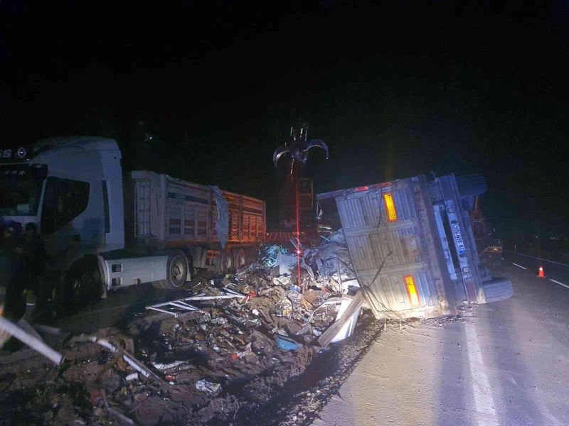 Kayseri-Niğde Karayolu’nda hurda yüklü tır devrildi.