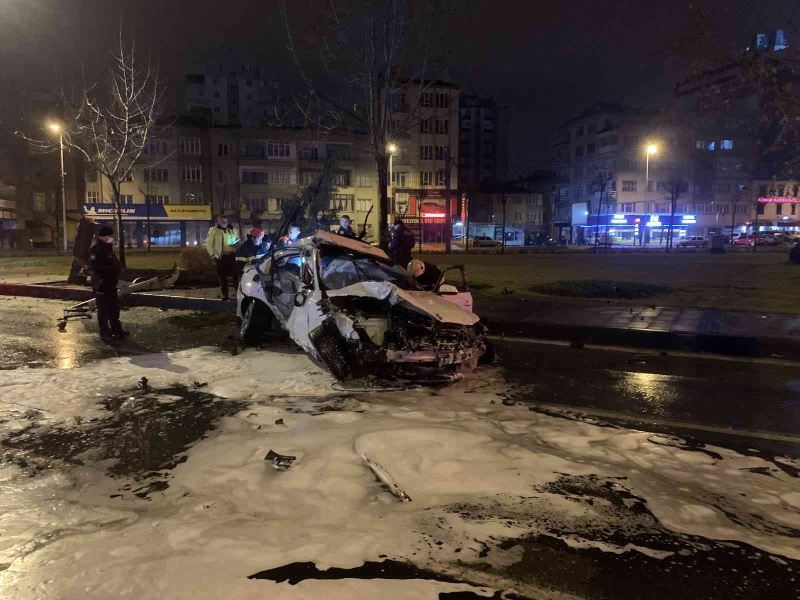 Kontrolden çıkan otomobil ağacı devirerek takla attı: 2 yaralı