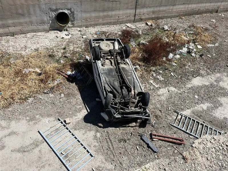 Kayseri’nin Kocasinan ilçesinde sürücüsünün direksiyon hakimiyetini kaybettiği otomobil bariyerleri aşarak kanala düştü.