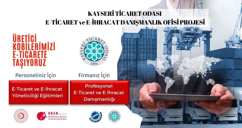 Üreten Şehirler Programı çerçevesinde Kayseri Ticaret Odası’nın yürüttüğü Sanayi ve Teknoloji Bakanlığı ve Orta Anadolu Kalkınma Ajansı tarafından desteklenen “Kayseri E-Ticaret ve E-İhracat Danışmanlık Ofisi Projesi” ile üretici KOBİ üyelerimizin e-ticaret ve e-ihracat alanında nitelikli şekilde desteklenmesi planlanıyor. Proje çerçevesinde, tekstil ürünlerinin imalatı, ana metal sanayii, fabrikasyon metal ürünleri imalatı, elektrikli teçhizat imalatı, başka yerde sınıflandırılmamış makine ve teçhizat imalatı, mobilya imalatı sektörlerindeki 120 üretici KOBİ firmanın ilgili personeli e-ticaret ve e-ihracat konularında eğitimler alacak. Bu sektörlerdeki 20 firma da 4 ay sürecek profesyonel danışmanlık desteğinden faydalanacak. Ayrıca KTO bünyesinde kurulan “Kayseri E-Ticaret ve E-İhracat Danışmanlık Ofisi” tüm üyelere e-ticaret ve e-ihracat konusunda destek verecek. Proje ile üye firmaların ticari kapasitelerinin artırılması, yeni satış kanallarının oluşturulması, şehrin ihracatının artırılması ve ihraç pazarlarının çeşitlendirilmesine katkıda bulunulması hedefleniyor.