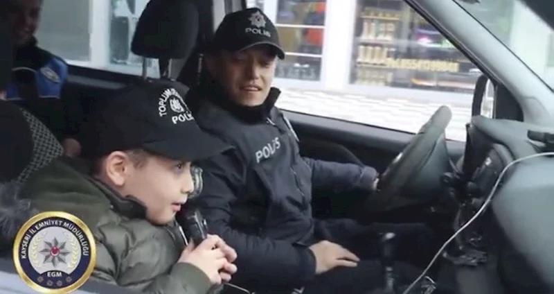 Kayseri’de polis arabasına binerek, polisleri yakından görmeyi hayal eden Ahmet Batu Özcan’ın hayali gerçek oldu. Özcan’ın ailesinin polis ekiplerini arayarak durumu bildirmesi üzerine Kayseri İl Emniyet Müdürlüğü Toplum Destekli Polislik Şube Müdürlüğü ekipleri harekete geçti. Ahmet Batu’yu evinden alan ekipler, hayali olan polis arabasına bindirerek gezdirdi. Daha sonra Danişment Şehit Oktay İzgi Polis Merkezi’ne götürülen Ahmet Batu, polislerle sohbet ederek, polis merkezini gezdi. Hayali gerçek olan küçük çocuğun mutluluğu yüzüne yansıdı.