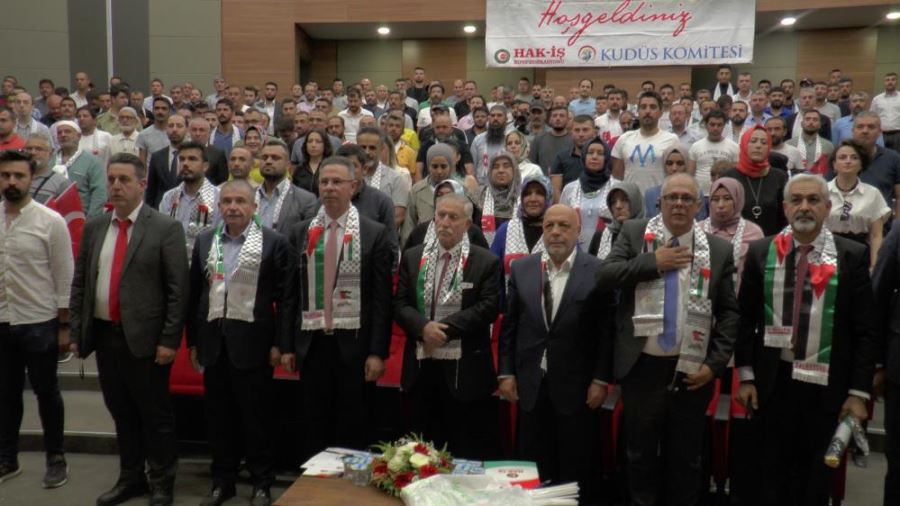 Kayseri’de HAK-İŞ Konfederasyonu Kudüs Komitesi tarafından düzenlenen ‘Kudüs için ayaktayız, Filistin için Buradayız’ konulu programda konuşan HAK-İŞ Konfederasyonu Genel Başkanı Mahmut Arslan, “Filistin’de vatansız kalmama mücadelesi bütün zorluklara rağmen devam ediyor” dedi.