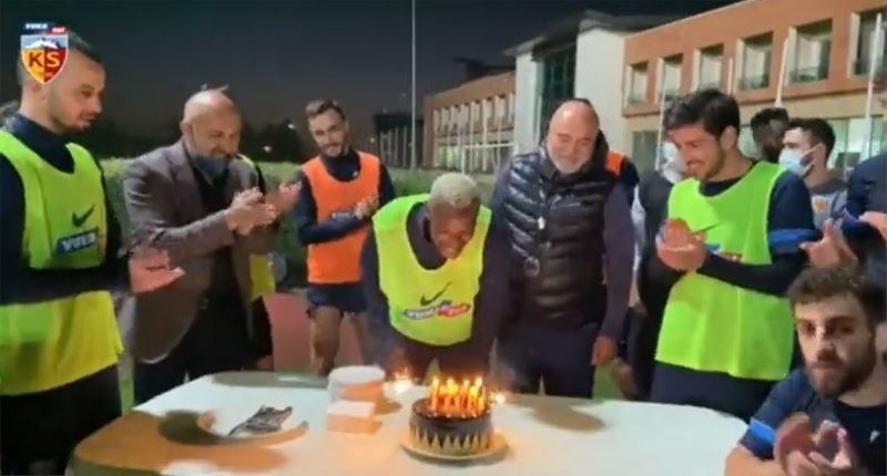 Yukatel Kayserispor’un Senegalli forvet oyuncusu Mame Baba Thiam’a takımı tarafından antrenman sonrası sürpriz doğum günü kutlaması yapıldı.
