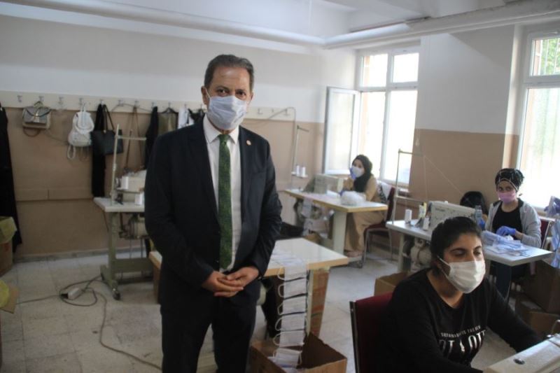 Maske üretiminin devam ettiği okulu ziyaret eden İl Milli Eğitim Müdürü Celalettin Ekinci, öğrenciler ve işçilerle sohbet ederek, çalışmalar hakkında okul yönetiminden bilgiler aldı. Zor bir süreçten geçildiğini kaydeden Ekinci, “Bu okulumuz bizim için özel bir okulumuz. Biliyorsunuz ki bir salgın sürecindeyiz ve zor bir süreç yaşıyoruz. Bu zor sürecin ilk günlerinde bu okulumuz yöneticileri ile öğretmenleri ve öğrencileri ile ellerini taşın altına koydular. İlk günden beri fedakarca, sokağa çıkma kısıtlamalarının olduğu günlerde, hafta sonları, bazen de geceleri olmak üzere maske üretimi konusunda gerçekten örnek bir çalışma içerisine girdiler. Okulumuzda hem öğrencilerimiz bu işin içerisindeler hem de İŞKUR vasıtasıyla arkadaşlarımız bize destek veriyorlar. Bu okulda üretilen maske 2 milyona yaklaşmıştır. Hem döner sermaye kapsamında ücret karşılığında maskeler değişik yerlere gönderiliyor hem de sosyal sorumluluk ilkesi kapsamında ihtiyaç sahiplerine de elimizden geldiği kadar maskelerden ulaştırmaya çalışıyoruz” ifadelerini kullandı.
