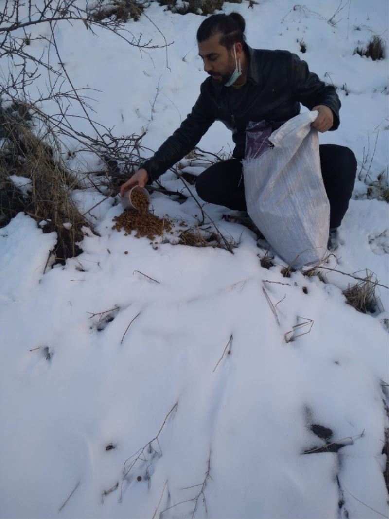 Kayseri’de Burhan Dinçbal Ortaokulunda matematik öğretmeni olan Selçuk Tütak, sosyal sorumluluk projesi kapsamında soğuk havalarda aç kalan sokak hayvanları için yem bıraktı.