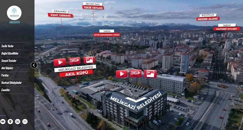 Melikgazi Belediyesi, Araştırma ve Geliştirme Müdürlüğü tarafından tasarlanan “Melikgazi 360” isimli web sitesi ile Melikgazi sınırları içerisinde yer alan tarihi yerlerin, doğal güzelliklerin, park ve camilerin, Melikgazi Belediyesi’ne ait sosyal tesislerin, kütüphanelerin, kentsel dönüşüm çalışmalarının görsel tanıtımını yaparak vatandaşları kolaylıkla bilgilendiriyor.