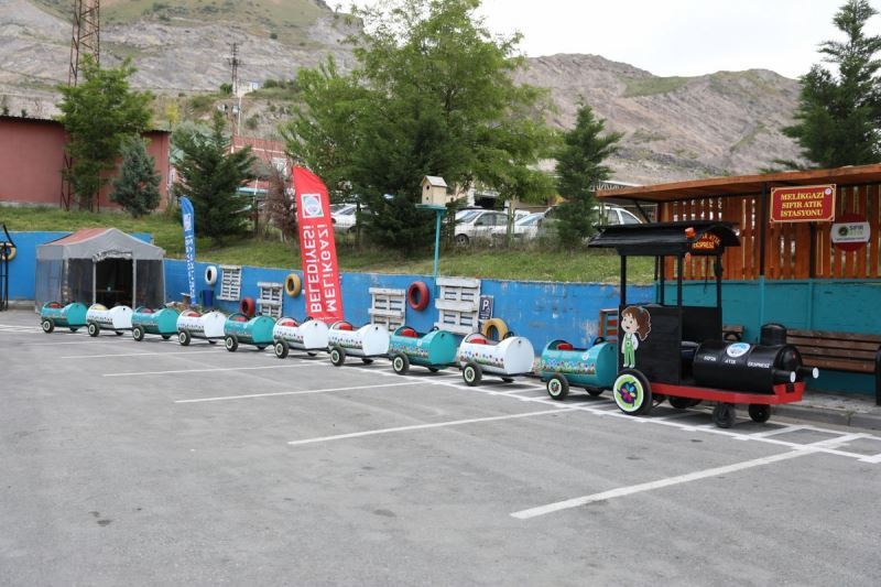 Melikgazi Belediyesi Geri Dönüşüm ve Eğitim Tesisi’nde çocukları eğlendirirken eğitmek ve sıfır atık konusunda farkındalık oluşturmak için geri dönüşüm malzemelerinden oluşan bir sıfır atık ekspresi yaptı.
