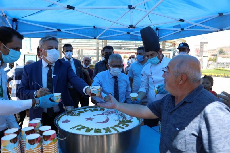 Melikgazi Belediyesi, Aşure Günü dolayısıyla Cumhuriyet Meydanı’nda vatandaşlara aşure ikramında bulundu.
