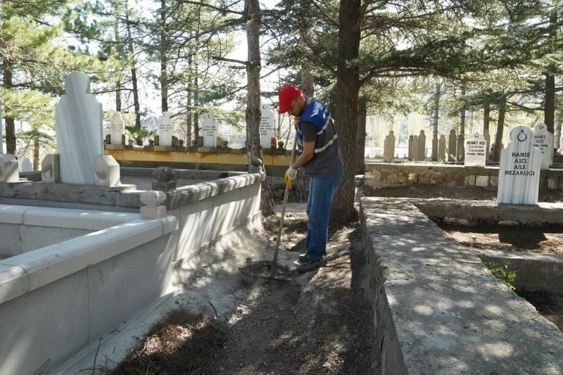Melikgazi Belediyesi, Ramazan Bayramı öncesi vatandaşlar tarafından yoğun olarak ziyaret edilen mezarlıklarda temizlik ve bakım çalışması yaptı.