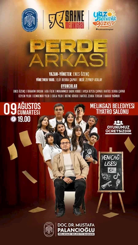 İlçede çeşitli kültür sanat etkinlikleri düzenleyen Melikgazi Belediyesi; 9 Ağustos Cumartesi günü Sahne Melikgazi kapsamında hazırladığı ’Perde Arkası’ tiyatro oyununu sahneleyecek.
