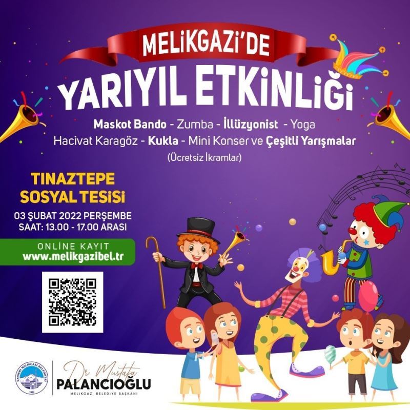 Yarıyıl tatili süresince belediyeye bağlı 2 tesiste öğrenciler için kültürel, sanatsal etkinlikler ve eğitsel atölyeler olacak. Öğrenciler için hem eğitici hem eğlendiren etkinlikler düzenlediklerini söyleyen Melikgazi Belediye Başkanı Dr. Mustafa Palancıoğlu, "Çocuklarımız evde sıkılmasın diye birçok tesisimizde onlar için organizasyonlar hazırladık. Necip Fazıl Kısakürek ve Tınaztepe Sosyal Tesislerimizde düzenlenecek olan etkinlikte workshoplar, maskot bando, zumba, mini konser, ilizyon, yoga, Hacivat ve karagöz, kukla olacak. Tatili doyasıya yaşamanız eğitici ve eğlenceli etkinlikler, konserler, bando takımları, tiyatro gibi etkinlikler ile tatil gibi tatil sizleri bekliyor. Yoğun bir ders döneminden sonra öğrencilerimiz gönüllerince eğlensinler istedik. Bu vesileyle çocuklarımızın aynı zamanda yaşıtlarıyla zaman geçirerek sosyalleşmelerine katkıda bulunuyoruz” diye konuştu.