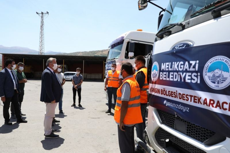 Melikgazi Belediyesi olarak her türlü desteği vermeye hazır olduklarını belirten Melikgazi Belediye Başkanı Dr. Mustafa Palancıoğlu, “Ülkemizin birçok bölgesinde ne yazık ki ormanlarımız yanıyor, ciğerlerimiz yanıyor. Maalesef ülke genelinde yangınlar hepimizi çok üzdü. Bu kapsamda Türkiye Belediyeler Birliği başta olmak üzere Cumhurbaşkanımızın koordinasyonunda herkes seferber oldu. Biz de belediyeler olarak Türkiye genelinde elimizden gelen her türlü desteği vermeye çalışıyoruz. Bu kapsamda ilk etapta belediye olarak özellikle mobil duş ve WC aynı zamanda da hem toma görevi gören üstten su fışkırtan arazözümüz var. Yangınla mücadele eden ekiplere ve vatandaşlara destek olmak amacıyla Muğla’ya su, 4x4 bir araç, mobil WC-duş ve su arazözü yangın bölgesine gönderiyoruz. Bunun haricinde de gerekli talepler bize ulaştıkça, iş makinesi olsun, su ve ayran gibi ihtiyaçlar olsun Melikgazi Belediyesi olarak elimizden gelen desteği vereceğiz. Arkadaşlarımız görevli olarak gidiyorlar. Zaten önden bir heyet göndermiştik onlar çalışıyorlar, inşallah kazasız belasız oraya ulaşırlar ve oradaki mücadeleye destek verirler. İnşallah en kısa zamanda bu yangınlar söner failleri buluruz. Bu büyük felaketten kenetlenerek, dayanışma içinde çıkacağız, hep birlikte çıkacağız” diye konuştu.