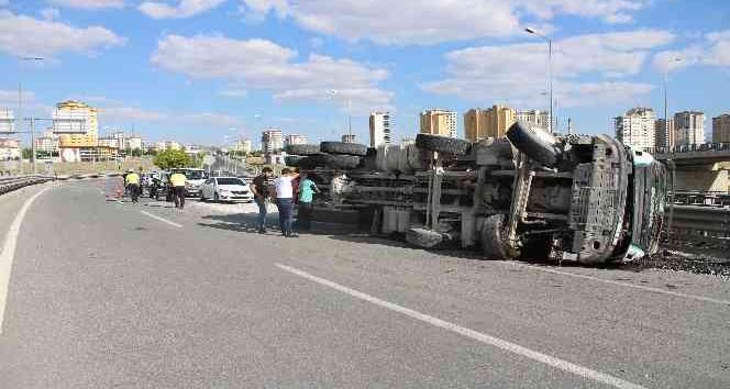 Kayseri’de mıcır yüklü kamyonun devrilmesi sonucu 1 kişi yaralandı.