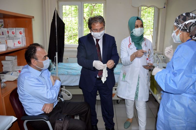 İl Sağlık Müdürü Doç. Dr. Ali Ramazan Benli, İl Milli Eğitim Müdürü Bilal Yılmaz Çandıroğlu’nun Covid-19 ilk doz aşısını vurdu.