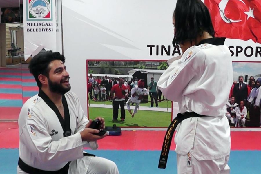 Şampiyonların aşkı bu kez ringde yeşerdi. Sayısız kez Türkiye şampiyonu olup, uluslararası arenada madalya kazanan iki sporcu, birbirine gönül verdi. Kayseri Melikgazi Belediyespor bünyesinde Taekwondo yapan milli sporcu ve antrenör Yunus Emre Sayan, yıllardır beraber spor yaptığı Türkan Teke’ye gönlünü kaptırdı. Katıldıkları bir turnuva sonrasında Türkan’a açılmayı başaran ve kalbini açan Yunus Emre Sayan, ailesinin de onayını aldıktan sonra genç şampiyona evlilik teklifi yaptı. Salonda antrenman yaparken evlilik teklifi yapmayı kafasına koyan milli sporcu Yunus Emre Sayan, kameraların kayıtta olduğu anda gönlünü kaptırdığı kıza yüzüğü sundu. Antrenman esnasında sakatlanmış gibi yapıp Türkan’ın dikkatinin dağıldığı anda beline gizlediği yüzüğü çıkaran yunus Emre Sayan, evlilik teklifi yaptı. Yunus Emre’nin belinden yüzüğü çıkarıp kendisine evlilik teklifi yapmasına çok şaşıran ve teklifi kabul eden Türkan Teke’nin de şaşkınlığı ve mutluluğu görülmeye değerdi.