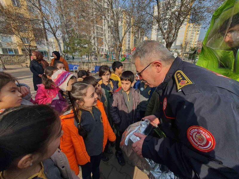 Kentte 17 farklı istasyonda 55 araç ve 294 personel ile hizmet veren Kayseri Büyükşehir Belediyesi İtfaiye Daire Başkanlığı ekipleri, vatandaşların zor zamanlarda yanlarında olduğu gibi öğrencileri afetlere hazırlamak için eğitimlerini de sürdürüyor. Melikgazi ilçesinde bulunan Malazgirt İlkokulu’nda öğrenci ve öğretmenler ile buluşan ekipler, hem itfaiyecilik mesleğini tanıttı hem de öğrencilere yangın konusunda bilgiler verdi. Olaylarda kullandıkları gereçleri uygulamalı olarak öğrencilere anlatan ekipler, yangın söndürme tatbikatı da yaptı. Kayseri Büyükşehir Belediyesi İtfaiye Daire Başkanı Mustafa Kızılkan da, öğrencilerle yakından ilgilenerek, itfaiye erlerinin kullandığı özel kıyafetleri çocuklara giydirdi. Deprem anında hayat kurtaran "çök, kapan, tutun" tekniği hakkında öğrencilere bilgiler veren Kızılkan, tatbikatı da bizzat kendisini yaptırdı. Öğrenciler de çizdiği itfaiye resimlerini Kızılkan’a hediye etti.
