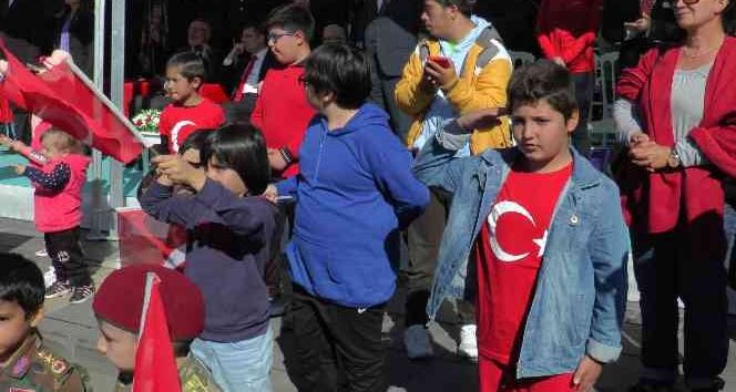 Kayseri’de 29 Ekim Cumhuriyet Bayramı dolayısıyla düzenlenen etkinliklerde, küçük çocuklar geçit töreni kortejini ellerinde bayraklarla asker selamı ile karşıladı.