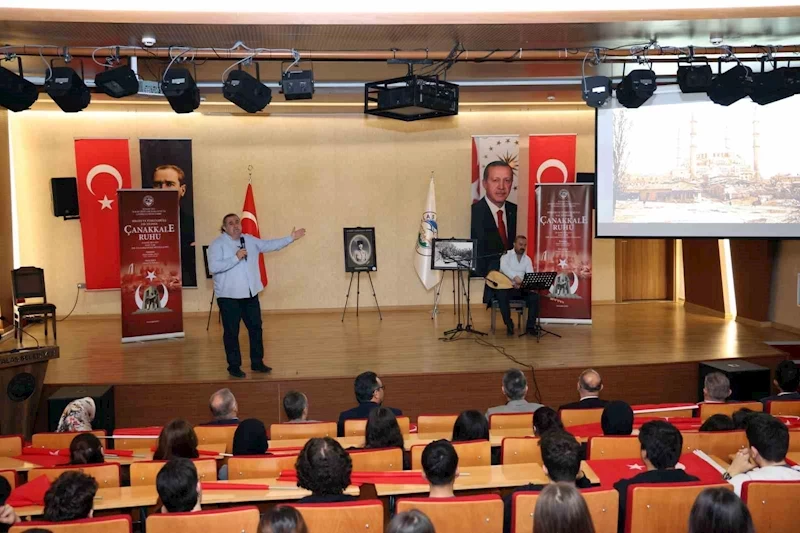 Tarihçi Öğretim Görevlisi Ahmet Nedim Kilci anlatımıyla salonu dolduran gençler, Mehmetçiğin yaşadıklarını hüzünle ve gururla anlattı.