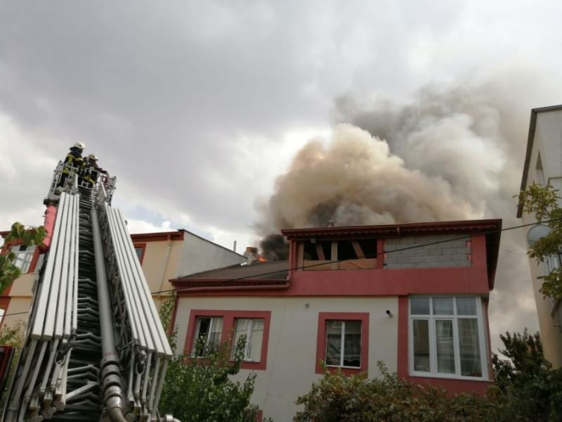 Müstakil evin çatısında çıkan yangın paniğe neden oldu
