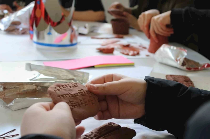 Kayseri’de Arkeoloji Müzesi’ni gezen lise öğrencileri; en çok etkilendikleri eserleri kil atölyesinde kendi elleriyle yeniden yapıyor.