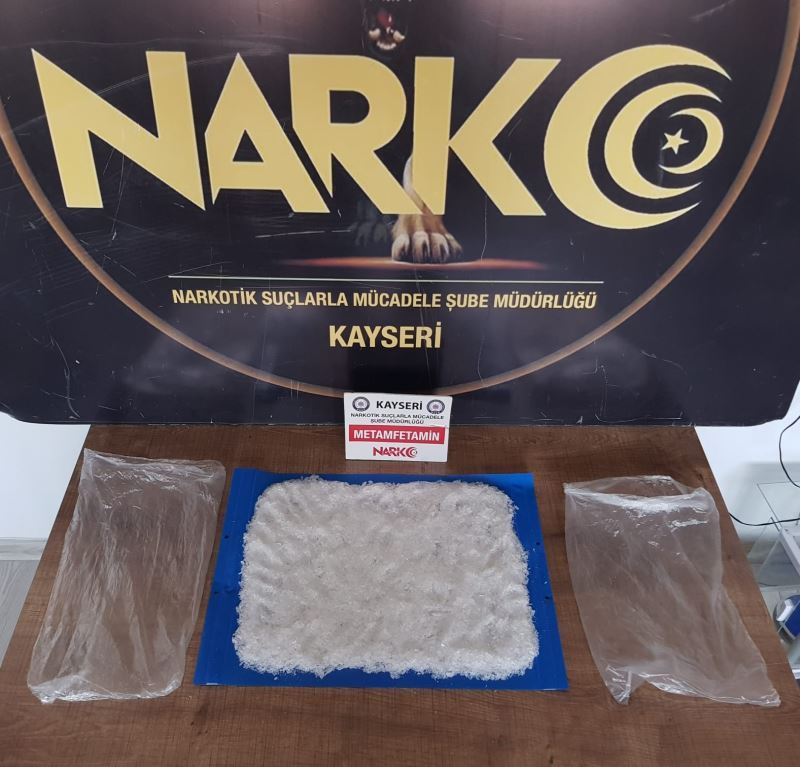 Yine Narkotik Suçlarla Mücadele Şube Müdürlüğü ve İstihbarat Şube Müdürlüğü ile yapılan ortak çalışmada, Kocasinan ilçesine bağlı Yeni Mahalle’de bulunan bir adreste yapılan aramada, 478 gram metamfetamin maddesi ele geçirilerek M.T. ve E.B. isimli şahıslar yakalanarak, uyuşturucu madde ticareti yapmak suçundan gözaltına alındı.
