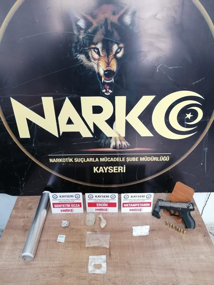 Edinilen bilgiye göre, Narkotik Suçlarla Mücadele Şube Müdürlüğü görevlilerince yapılan çalışmalarda A.Ö.’nün uyuşturucu madde ticareti yaptığı bilgisi alındı. Ekiplerce yapılan aramada; 20 gram eroin, 1.05 gram metamfetamin, 3 adet sentetik ecza hap, 1 adet uyuşturucu paketlemek için rulo folyo, 1 adet ruhsatsız tabanca ele geçirildi.