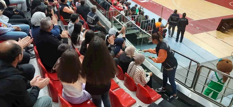 Kayseri İl Emniyet Müdürlüğü Narkotik Suçlarla Mücadele Şube Müdürlüğü ekiplerince Euro Cup’ta oynanan Melikgazi Kayseri Basketbol-Olimpiacos maçını izlemeye gelen vatandaşlara ’uyuma’ uygulaması hakkında bilgilendirme yapıldı.