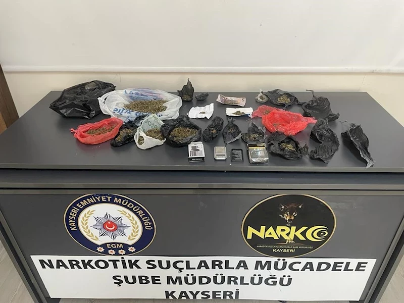 Edinilen bilgiye göre Narkotik Suçlarla Mücadele Şube Müdürlüğü ekiplerince Melikgazi ilçesinde yapılan çalışmalarda; S.B. ve T.K.’nin uyuşturucu madde ticareti yaptığı bilgisi alındı. Ekiplerce düzenlenen operasyonda; S.B. ve T.K. gözaltına alınırken yapılan aramalarda ise 25 parça halinde 125 gram uyuşturucu madde ile 1 adet hassas terazi ele geçirildi. Gözaltına alınan S.B.’nin ayrıca 2 kez ’Basit Yaralama ve Uyuşturucu madde Kullanmak’ suçlarından arandığı tespit edildi.