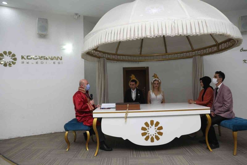 Kayseri’de 02.02.2022 tarihinde dünya evine girmek isteyen çiftler, nikah salonlarında yoğunluk oluşturdu.