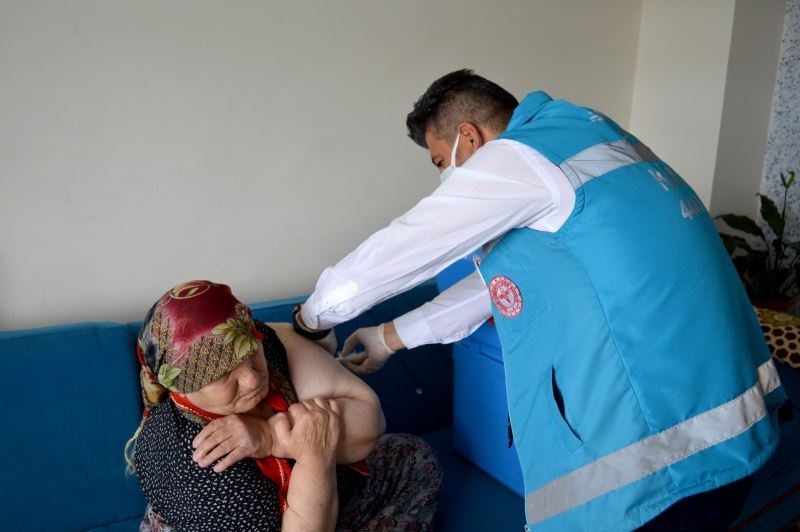 Oğlunun ikna ettiği 91 yaşındaki Raziye nine covid-19 aşısını evinde oldu