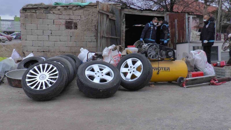 Hırsızlık Büro Amirliği tarafından daha önce oto sanayideki iş yerlerinden çalınan malzemelerin bulunmasına yönelik yapılan çalışmalar sonucunda, Melikgazi ilçesine bağlı Yıldırım Beyazıt Mahallesi’nde bulunan bir ikamete baskın düzenlendi. İkamet içerisinde yapılan aramada akü bulunurken, evin müştemilatında yapılan aramalarda ise piyasa değeri ortalama 700 bin TL olan lastik, jant, mekanik malzeme, otomobil farı ve jeneratör gibi çok sayıda materyal bulundu.