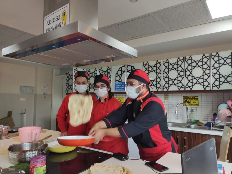 Özel eğitimde yiyecek ve içecek hizmetleri alanında mesleki eğitim alan öğrenciler, uzaktan eğitimde bir araya gelerek Kayseri yağlaması yapmayı öğrendi.