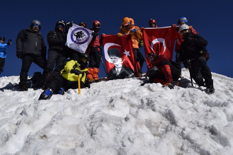 KAYSERİ (İHA) – Kayseri’de 50 dağcı, 19 Mayıs Atatürk’ün Anma, Gençlik ve Spor Bayramı dolayısıyla 3 bin 916 rakımlı Erciyes dağına tırmanarak zirvede İstiklal Marşı’nı okudu.