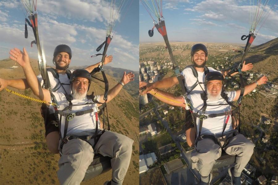 Kayseri’de yaşayan 64 yaşındaki Mustafa Turan paraşütle atlayış gerçekleştirdi. Talas ilçesindeki 2000 rakımlı Ali Dağı’ndan pilot Esat Güneş ile beraber atlayan Turan, keyifli anlar yaşadı. Pilotun yaptığı akrobatik hareketlerle adeta kendinden geçen Mustafa Turan tekbir sesleri ile göğü inletti. Yaşlı adamın keyifli anları ise saniye saniye kameraya yansıdı.