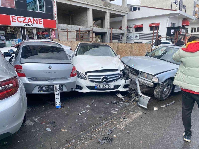 Kayseri’nin Kocasinan ilçesinde bir otomobil, park halindeki araçlara çarptı. Güvenlik kameralarına da yansıyan kazada 4 araçta maddi hasar oluştu.