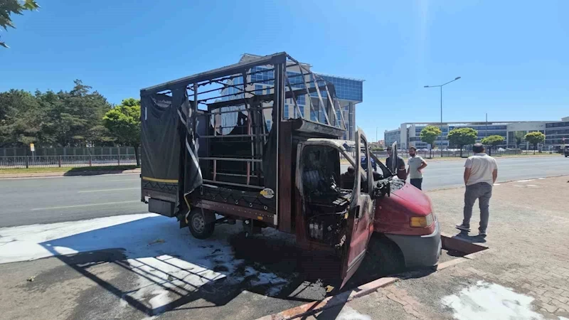 Kayseri’nin Kocasinan ilçesinde park halindeki kamyonet, çıkan yangında kullanılamaz hale geldi.
