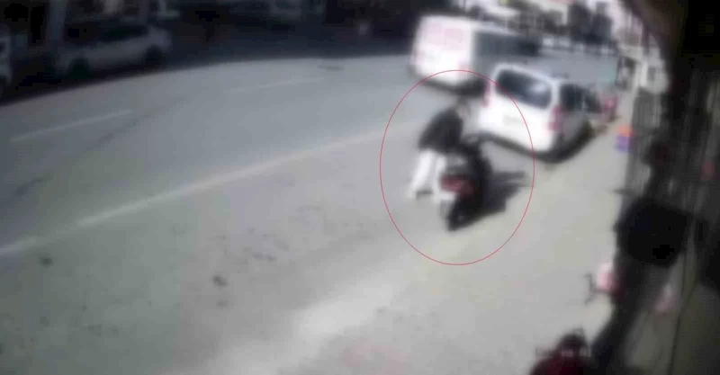 Çocukların motosikletten cep telefonunu çaldığı anlar ise güvenlik kamerasına yansıdı.