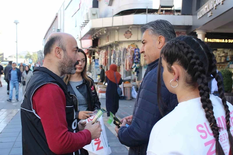 Narkotik Şube Müdürlüğü ekipleri, Cumhuriyet Meydanı’nda vatandaşlara broşür dağıtarak, bilgilendirme yaptı. Vatandaşlara uyuşturucunun zararlarını anlatan ekipler, vatandaşlara çanta ve kalem hediye etti.