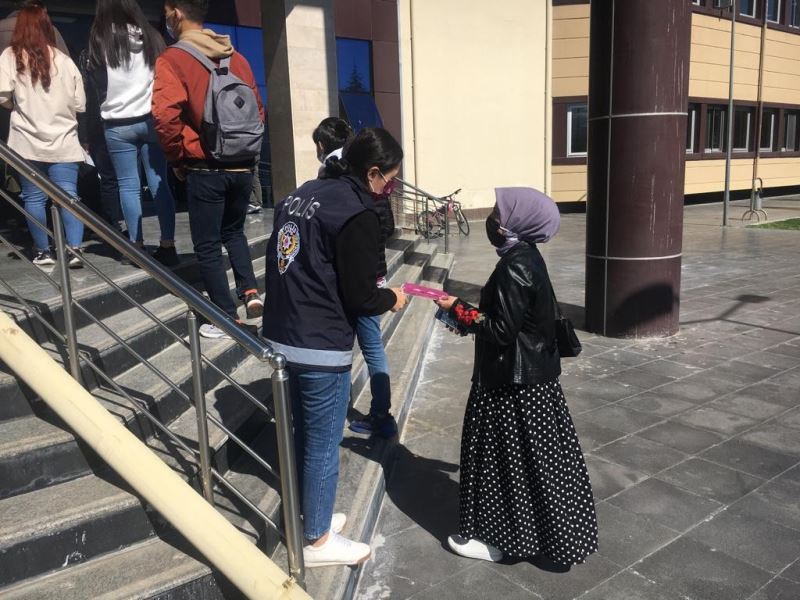 Aile İçi Şiddet büro Amirliği ekiplerince Erciyes Üniversitesi (ERÜ) yemekhaneler bölgesinde öğrencilere KADES broşürü ve maskesi dağıttı. Ekipler öğrencileri; şiddet uygulayan kişiler hakkında tedbirler, şiddete maruz kalınca nerelere başvurulabileceği, şiddete maruz kalınca yararlanılabilecek haklar ve KADES uygulaması hakkında bilgilendirdi.