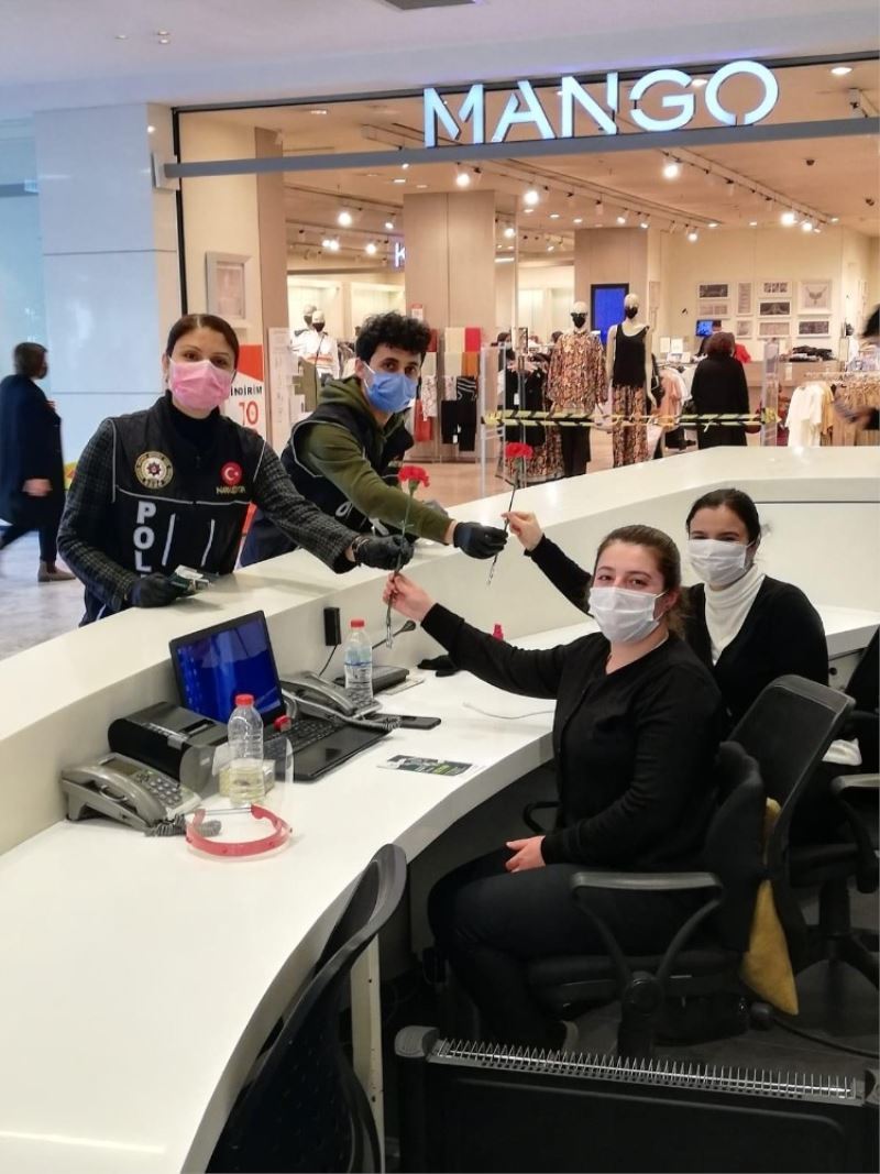 Kayseri İl Emniyet Müdürlüğü Narkotik Suçlarla Mücadele Şube Müdürlüğünde görevli polisler, 8 Mart Dünya Kadınlar Günü dolayısıyla kadın vatandaşlara karanfil dağıttı.