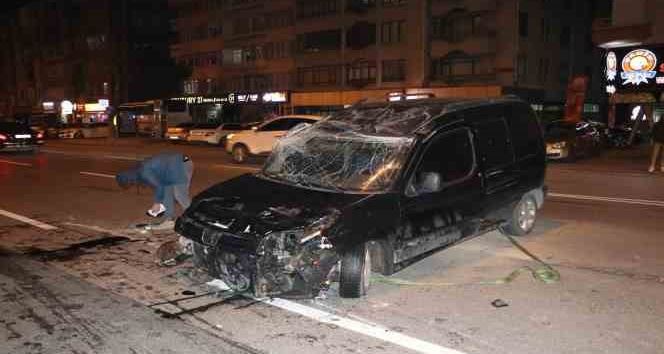 Kayseri’nin Kocasinan ilçesinde meydana gelen kazada refüje çarpan ticari araç takla attı.