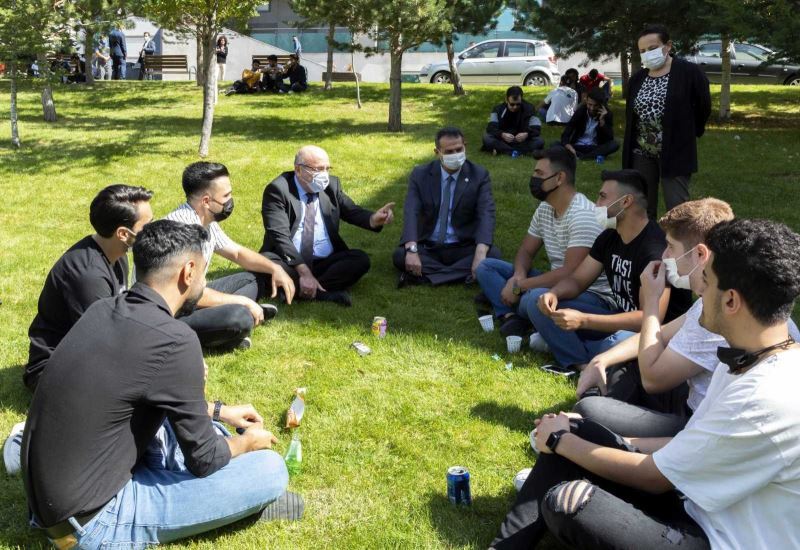 Kayseri Üniversitesi (KAYÜ) Rektörü Prof. Dr. Kurtuluş Karamustafa, kampüs bahçesinde öğrencilerle bir araya geldi. Kampüste öğrencilerle sohbet eden Rektör Karamustafa, öğrencilerin beklentilerini dinledi.