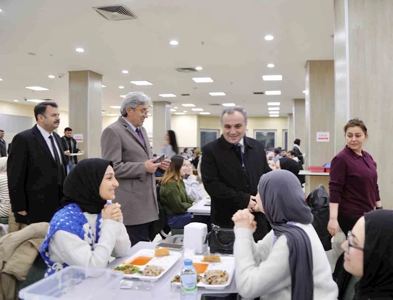 Yemekhanede öğrencilerle birlikte tabldotta iftar menüsü alan Rektör Prof. Dr. Altun, öğrenciler ile sohbet etti.