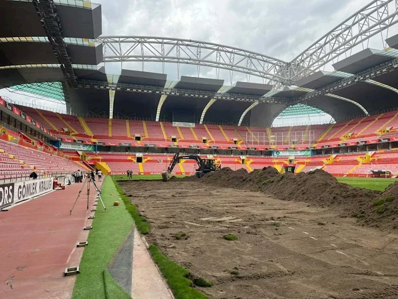 Süper Lig ekiplerinden Kayserispor’a ev sahipliği yapan RHG Enertürk Enerji Stadyumu’nun zemini yenilenmeye başlandı.