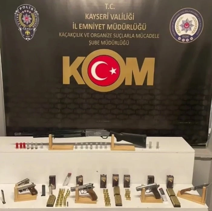 Kayseri İl Emniyet Müdürlüğü Kaçakçılık ve Organize Suçlarla Mücadele Şube Müdürlüğü ekiplerince yapılan çalışmalarda; ruhsatsız silah satışı yaptığı belirlenen şahıs yakalanırken çok sayıda ruhsatsız silah ele geçirildi.
