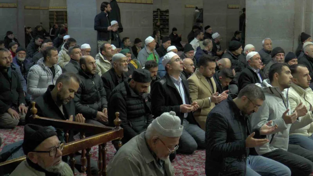 Kayseri’de sabah namazında düzenlenen program ile vatandaşlar ve protokol, 6 Şubat depremlerinde hayatını kaybeden vatandaşlar için dua etti.