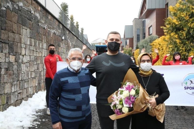 Spor A.Ş Genel Müdürü İbrahim Somtaş ve çalışanları ilk olarak aynı zamanda Nöroloji Doktoru olan Büyükşehir Belediye Başkanı Dr. Memduh Büyükkılıç’ı doktor eşi Necmiye Büyükkılıç ve doktor oğlu Mehmed Enes Büyükkılıç ile birlikte yaşadığı eve sürpriz bir ziyarette bulundu.