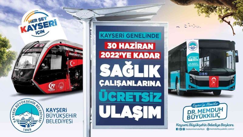 Kayseri Büyükşehir Belediye’sinin görev yapan sağlık çalışanlarına sağladığı, ilçeler de dâhil olmak üzere, yılsonunda bitecek olan ücretsiz toplu ulaşım desteği 30 Haziran 2022’ye kadar uzatıldı.