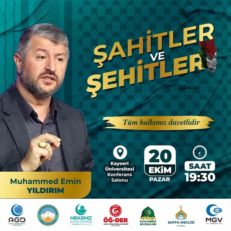 Yusuf Şahin yaptığı açıklamada; "Anadolu Gençlik Derneği başta olmak üzere Filistin sevdalısı bir çok derneğimizle ortaklaşa düzenleyeceğimiz ufuk açıcı konferanslarımızı sürdürüyoruz. Gündemimiz değişmiyor. Doğru bildiğimiz yolda çalışmalarımızı sürdürüyoruz. Yeniden Kayseri halkını güzel bir konferans ile buluşturuyoruz. Değerli hocamız Muhammed Emin Yıldırım, konuşmacı olarak Kayseri’de hitapta bulunacak. Konumuz ’Şehitler ve Şahitler’. Biz de diyoruz ki; ‘Selam olsun gidenlere. Selam olsun şahitliğe gölge düşürmeden kalanlara.’ Bunu yeniden akdedebilmek adına herkesi bekliyoruz” diyerek, tüm halkı bu anlamlı konferansa davet etti. Programda şehitlerin manevi mirası ve şahitlik kavramının derinlemesine ele alınacak.